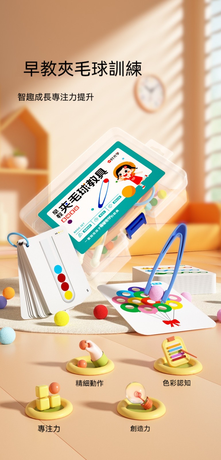 【早教夾毛球教具幼兒童益智專注力訓練 】囡仔指尖魔法課!夾毛球訓練組~練出專注力+巧小手✋️