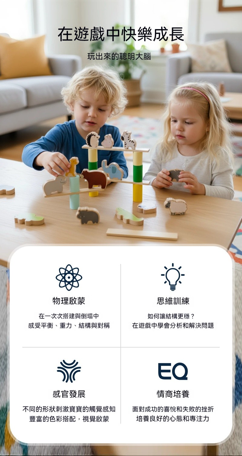 【兒童木制動物平衡疊疊樂】動物疊疊樂挑戰賽!囡仔疊懸懸嘸驚崩~玩出耐心×創意雙料冠軍✨