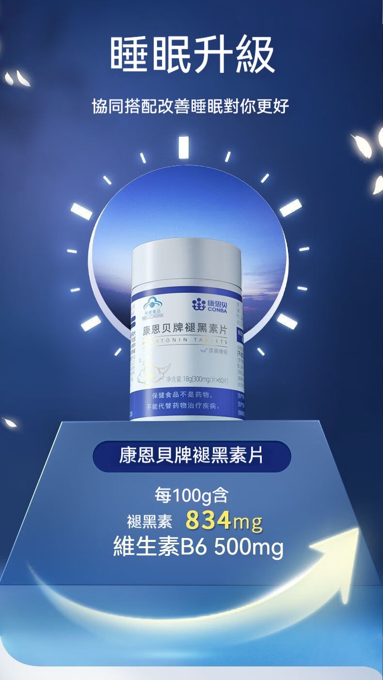【康恩貝官方正品】褪黑素+維他命B6雙效深睡片|香港藥房熱賣同款|非軟糖成人專用|30分鐘速眠 一夜安睡到天明|順豐直送香港